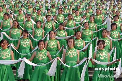 圖:內(nèi)蒙少女著盛裝迎接奧運(yùn)火炬