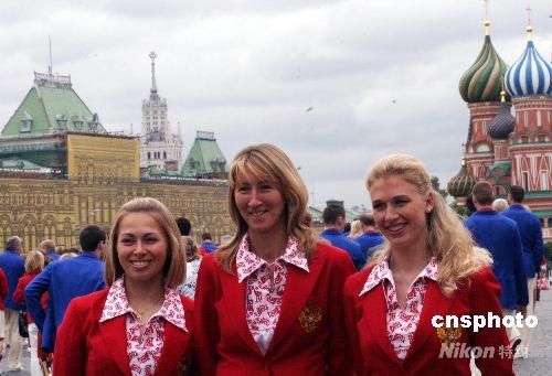 7月29日,俄羅斯總統(tǒng)梅德韋杰夫在克里姆林宮為參加北京奧運(yùn)會的俄羅斯代表團(tuán)舉行送行儀式,鼓勵本國運(yùn)動員爭創(chuàng)佳績。俄羅斯奧運(yùn)代表團(tuán)將于近日陸續(xù)抵達(dá)北京。圖為身穿奧運(yùn)禮服的俄羅斯女運(yùn)動員在紅場留影。 中新社發(fā) 田冰 攝