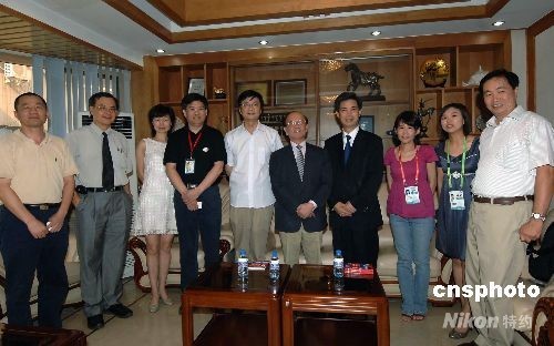 臺灣“中央社”董事長黃肇松(左六)、大陸部主任李培雄(左二)一行8月9日訪問中國新聞社,與中新社社長郭招金(右四)、總編輯劉北憲(左五)、副總編章新新(左四)、副總編夏春平(左一)、副總編王瑤(左三)、港臺部主任耿軍(右一)等合影。中新社發(fā) 鄒憲 攝