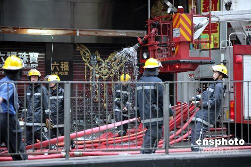十日上午九時(shí)許香港旺角嘉禾大廈發(fā)生五級(jí)火警,焚燒了近六個(gè)小時(shí)的大火在下午三時(shí)許救熄,火警中兩名消防員殉職,一名老婦死亡,另五十六人受傷。中新社發(fā) 洪少葵 攝