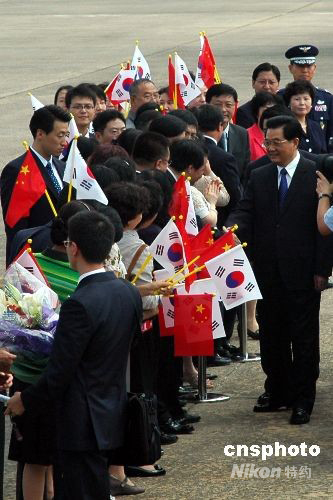 八月二十五日中午,中國國家主席胡錦濤抵達(dá)韓國首都首爾,開始對韓國進(jìn)行為期兩天的國事訪問。中新社發(fā) 孫宇挺 攝