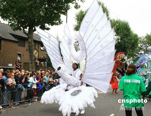 當(dāng)?shù)貢r(shí)間25日,歐洲最大規(guī)模的街頭文化藝術(shù)節(jié)——一年一度的英國(guó)諾丁山狂歡節(jié)在倫敦舉行,今年的主題是“歡迎世界”。圖中白色大鳥(niǎo)的翅膀上寫(xiě)著“歡迎來(lái)倫敦”。中新社發(fā) 李鵬 攝