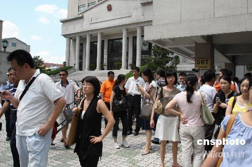 8月26日,上海第二中級法院電子信息牌上公告,轟動滬上的“楊佳襲警案”將在下午一點開庭。眾媒體被謝絕現(xiàn)場旁聽,許多媒體記者在法院門口觀望采訪。今年7月1日,北京籍男子楊佳闖入上海市閘北區(qū)政法辦公大樓,連續(xù)捅傷9名民警和一名保安,并致其中6名警察身亡,楊佳被當(dāng)場擒獲。中新社發(fā) 潘索菲 攝