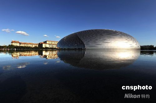圖:藍(lán)天白云下的國(guó)家大劇院