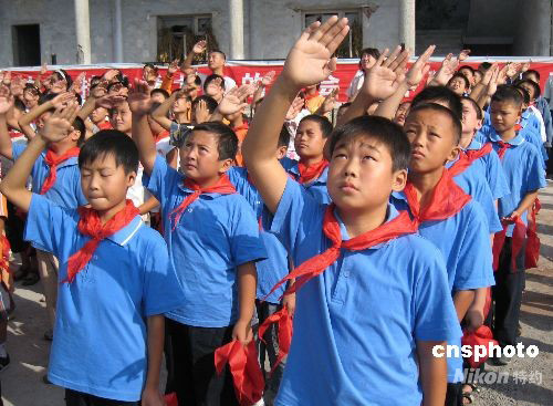 圖:開(kāi)學(xué)第一天四川災(zāi)區(qū)學(xué)生舉行升旗儀式
