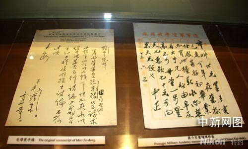 臺(tái)灣慈湖兩蔣文化園區(qū)中現(xiàn)正展出的毛澤東、蔣介石手跡。陳立宇 攝影