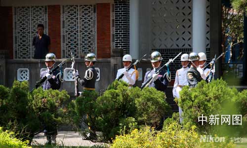 9月7日,臺(tái)灣慈湖兩蔣文化園區(qū)中儀仗隊(duì)正在蔣介石陵寢大門前表演節(jié)目。曾福志 攝影