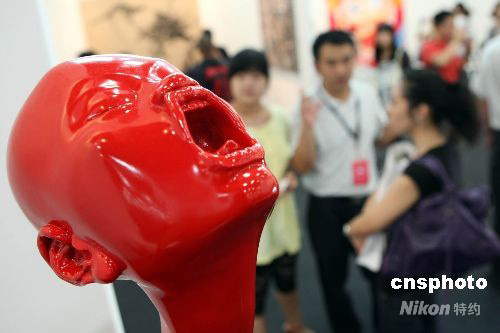 9月10日,2008上海藝術(shù)博覽會(huì)開幕。本屆藝博會(huì)吸引了來(lái)自中國(guó)、美國(guó)、法國(guó)等20個(gè)國(guó)家的140余家海內(nèi)外優(yōu)秀畫廊前來(lái)參展。中新社發(fā) 湯彥俊 攝
