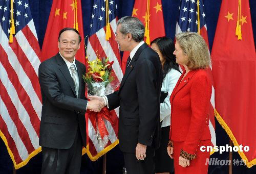 當(dāng)?shù)貢r間九月十六日上午,第十九屆中美商貿(mào)聯(lián)委會在美國加州約巴琳達(dá)市的“尼克松圖書館與誕生地基金會”舉行。中國國務(wù)院副總理王岐山和美國商務(wù)部長古鐵雷斯、貿(mào)易代表施瓦布共同主持此次會議,兩國政府相關(guān)部門官員參加會議。圖為古鐵雷斯(右二)、施瓦布(右一)在尼克松圖書館門廳歡迎王岐山一行。中新社發(fā) 張煒 攝