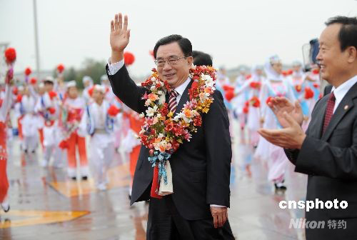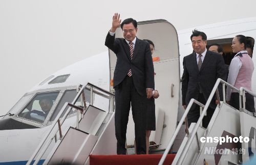 9月22日上午,以中共中央政治局常委、中央紀(jì)委書記賀國強(qiáng)為團(tuán)長的中央代表團(tuán),乘專機(jī)抵達(dá)銀川,參加寧夏回族自治區(qū)成立50周年慶;顒。在銀川河?xùn)|機(jī)場,受到寧夏回族自治區(qū)官員和民眾的熱烈歡迎。中新社發(fā) 廖攀 攝