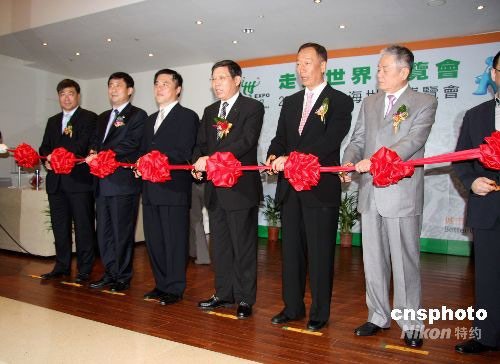 9月22日,“2010上海世界博覽會推介會”暨“走進世界博覽會”展覽活動在臺北舉行。臺北市市長郝龍斌(左三)、上海常務副市長楊雄(左四)、臺灣鴻海集團董事長郭臺銘(左五)等出席開幕式并剪彩。中新社發(fā) 陳立宇 攝