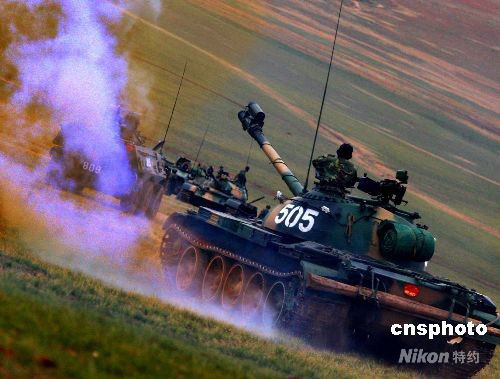 9月25日上午,中國(guó)人民解放軍“礪兵--2008”演習(xí)在塞北大漠展開(kāi)。這場(chǎng)演習(xí)是一場(chǎng)在復(fù)雜地形、復(fù)雜電磁環(huán)境、作戰(zhàn)信息“背靠背”情況下,跨軍區(qū)聯(lián)合、多兵種協(xié)同、陸航空一體、實(shí)兵檢驗(yàn)性戰(zhàn)術(shù)集團(tuán)立體機(jī)動(dòng)攻防戰(zhàn)斗演習(xí)。中新社發(fā) 宋吉河 攝