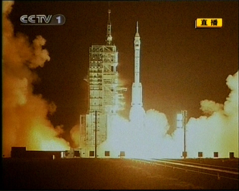 北京時(shí)間二十五日晚九時(shí)十分,中國自行研制的第三艘載人飛船神舟七號,在酒泉衛(wèi)星發(fā)射中心載人航天發(fā)射場由“長征二號F”運(yùn)載火箭發(fā)射升空。