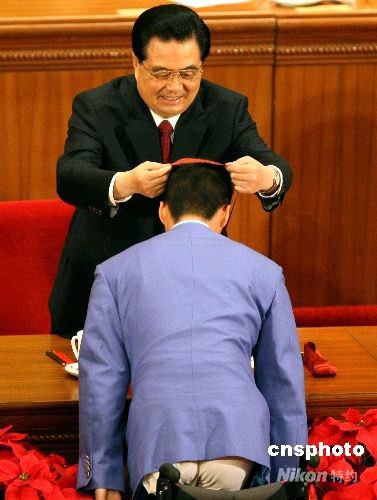 奧運殘奧總結(jié)表彰大會舉行 胡錦濤為獲獎?wù)哳C獎
