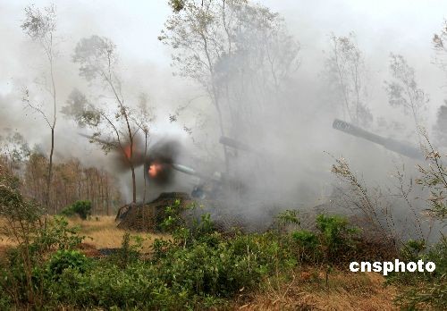 10月13日,海軍陸戰(zhàn)隊某旅在某地域組織自行榴彈炮實彈射擊考核。圖為榴彈炮發(fā)射瞬間。中新社發(fā) 李唐 攝