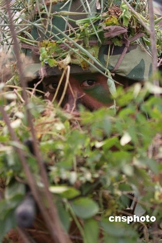 10月19日,濟南軍區(qū)偵察兵進行比武考核,偵察隊員們攀山越嶺行軍50公里,主要完成了橫越山澗、戰(zhàn)場救護、破襲戰(zhàn)斗三項課目考核,優(yōu)秀率90%。動態(tài)考核結束后將進行總結表彰,評出軍區(qū)偵察兵精武標兵。偵察隊員負戰(zhàn)斗裝具60米山澗。最好成績38秒。中新社發(fā) 崔成俊 攝