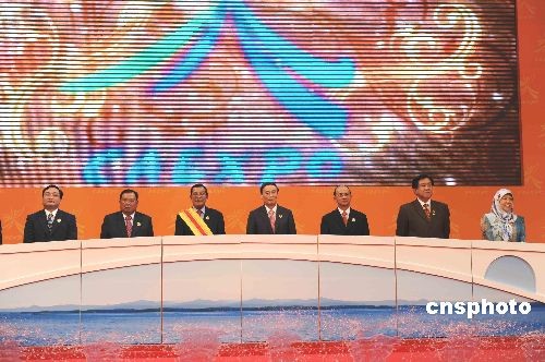 10月22日上午,第五屆中國—東盟博覽會在廣西南寧市開幕。中國國務(wù)院副總理王岐山、柬埔寨首相洪森、緬甸總理登盛、老撾副主席本揚·沃拉吉等中國和東盟政要出席了博覽會開幕儀式。中新社發(fā) 蔣雪林 攝