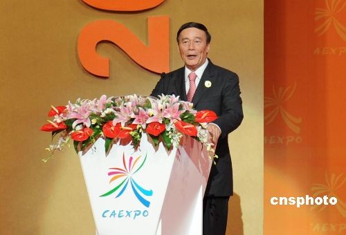 中國國務(wù)院副總理王岐山宣布中國—東盟博覽會開幕。