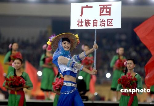 開幕式上,引導(dǎo)小姐身著極具閩南特色的鱘埔女裝帶領(lǐng)運(yùn)動(dòng)員進(jìn)場(chǎng)。中新社發(fā) 王東明 攝