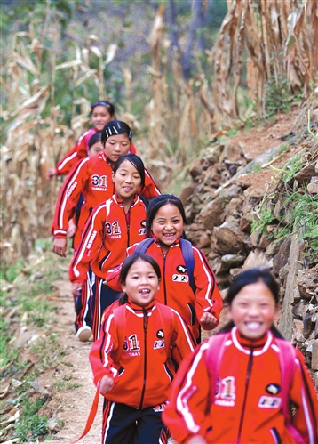 穿著志愿者送的校服,孩子們的笑臉顯得格外幸福。