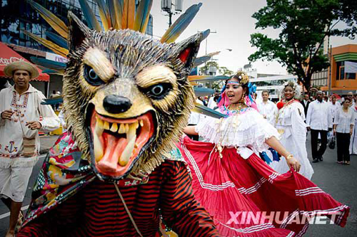11月3日,在巴拿馬首都巴拿馬城,身著傳統(tǒng)服裝的民眾參加國慶節(jié)慶祝游行。當(dāng)天,巴拿馬舉行盛大游行慶祝獨(dú)立105周年。