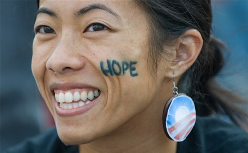 一個(gè)女孩臉上寫著“希望”