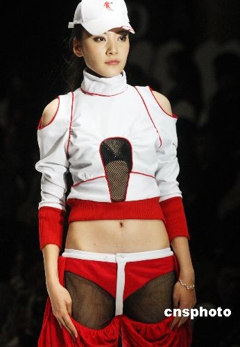 11月11日,第三屆中國(guó)運(yùn)動(dòng)裝備設(shè)計(jì)大賽在中國(guó)國(guó)際時(shí)裝周2009春夏系列發(fā)布上舉行。圖為模特展示第三屆中國(guó)運(yùn)動(dòng)裝備設(shè)計(jì)大賽作品。中新社發(fā) 錢興強(qiáng) 攝