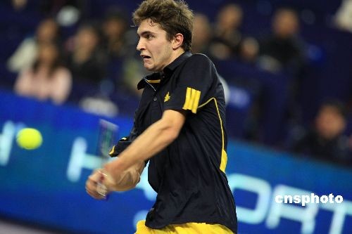 11月12日,在上海旗忠網(wǎng)球中心進(jìn)行的上海大師杯單打紅組比賽中,西蒙以0比2不敵穆雷。中新社發(fā) 湯彥俊 攝