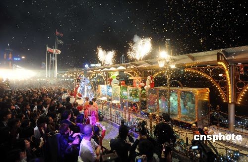 十一月十三日晚,香港海港城隆重舉行圣誕亮燈儀式,夢(mèng)幻燈光及煙火效果吸引到大批市民及游客駐足觀看。中新社發(fā) 鄧慶樂(lè) 攝