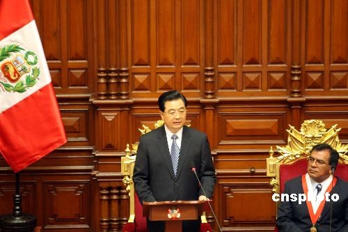 中國國家主席胡錦濤20日在秘魯國會發(fā)表題為《共同構(gòu)筑新時期中拉全面合作伙伴關(guān)系》的重要演講,就發(fā)展中國和拉美各國友好合作關(guān)系作了全面闡述。