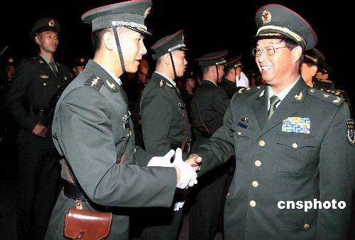 十一月二十五日,解放軍駐香港部隊(duì)進(jìn)行第十一次建制單位輪換行動(dòng)。二十五日凌晨,駐軍司令員張仕波少將、政治委員劉良凱中將來(lái)到新圍軍營(yíng),出席了陸軍部隊(duì)輪換交接儀式。中新社發(fā) 張勤 攝
