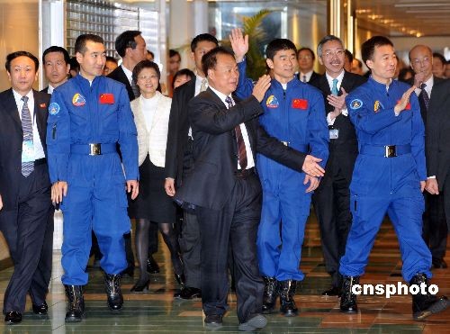 十二月八日,神舟七號(hào)載人航太飛行代表團(tuán)結(jié)束訪港旅程。代表團(tuán)團(tuán)長(zhǎng)張建啟及太空人翟志剛、劉伯明和景海鵬等到香港上環(huán)信德中心乘船離港,代表團(tuán)將前往澳門(mén)繼續(xù)展開(kāi)訪問(wèn)之旅。