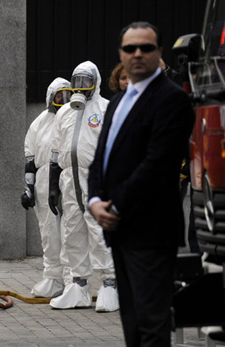 圖為西班牙馬德里美國使館外的安全人員。