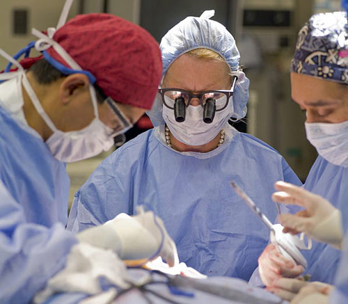 瑪利亞·西蒙諾(中)與其他幾名克利夫蘭診所的外科醫(yī)生在實施“換臉”手術(shù)。