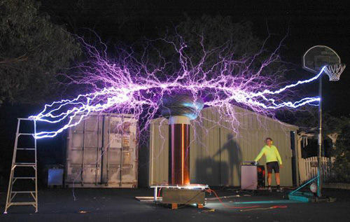特倫在做實(shí)驗(yàn)時(shí),習(xí)慣用一根釣魚竿調(diào)節(jié)閃電束的輻射方向。為了營造出五光十色的奇特效果,他通過安裝在照相機(jī)上方的一個(gè)濾色轉(zhuǎn)盤,讓“人造閃電”呈現(xiàn)出不同的顏色。由于特倫利用的是“超長曝光”攝影技術(shù),因此能夠在同一張照片中記錄下長達(dá)十幾秒的閃電效果。特倫表示:“在照片上,你看得見電火花,卻看不到它們究竟是從哪里冒出來的。這是一種虛幻的效果,可是并非借助Photoshop處理而來——所有一切都是用相機(jī)記錄下來的(真實(shí)影像)!