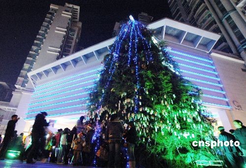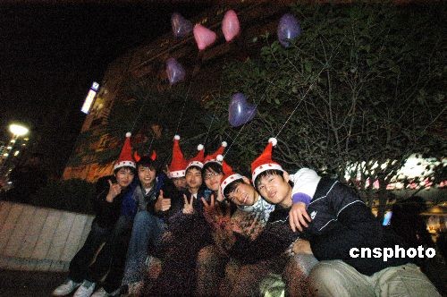 2008年12月24日晚,安徽合肥市不少市民走出家門,在街頭歡樂度過平安夜。中新社發(fā) 莊道龍 攝