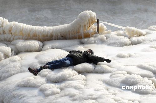12月28日,游客們?cè)谟^賞冬日壺口瀑布冰封景觀。由于連日來的急劇降溫,地跨晉陜兩省的黃河壺口瀑布因上游冰凌的不斷涌入,使壺口瀑布形成“冰橋”,瀑布飛濺的水珠冰凍形成了各種各樣奇特的冰掛,吸引了眾多游客和攝影愛好者。