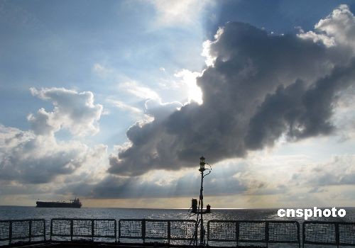 圖為在“海口”艦尾甲板所拍攝的陽光與烏云交相輝映的壯美觀景。中新社發(fā) 孫自法 攝