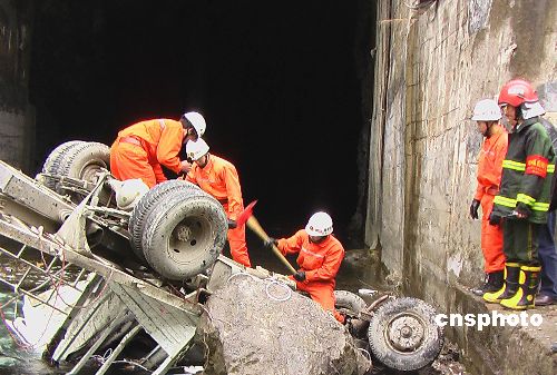 1月7日,貴州印江合水鎮(zhèn)一輛雙排座小貨車,行駛至省道303線75KM處遇凝凍打滑,撞壞公路圍擋,翻下40米的懸崖,掉進(jìn)印江河右岸泄洪洞,造成4人死亡1人重傷的交通事故。 中新社發(fā) 陳曉嵐 攝