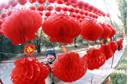 2009年1月9日,隨著春節(jié)臨近,北京地壇公園廟會的環(huán)境布置已進(jìn)入倒計(jì)時(shí)階段。眾多喜慶的大紅燈籠紛紛亮相,成為京城迎春的一道靚麗風(fēng)景。