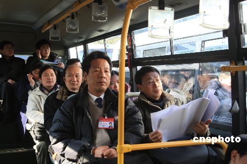 圖:上海政協(xié)委員坐公共汽車赴會