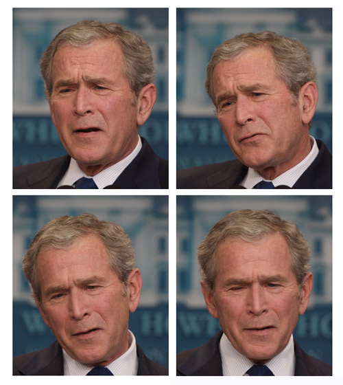 09年1月12日,美國現任總統(tǒng)布什在白宮舉行告別記者會時的各異表情。