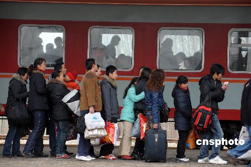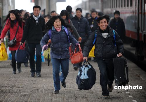 1月31日,安徽省亳州火車站迎來(lái)節(jié)后客流高峰。依照民間“三六九往外走”的習(xí)俗,大批回鄉(xiāng)過(guò)年的民工已開(kāi)始返城,一些外出務(wù)工者再次與家人告別,開(kāi)始新一年的打工生活。中新社發(fā) 張延林 攝