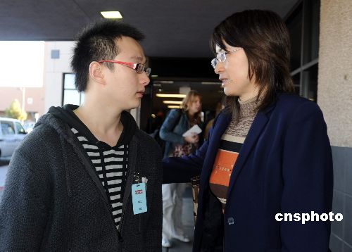 當(dāng)?shù)貢r間一月三十一日下午,中國駐洛杉磯副總領(lǐng)事黃曉健(右)在內(nèi)華達大學(xué)醫(yī)療中心和中國游客小洪(左)交談。小洪是沒有參加大峽谷一日游而躲過一劫的五名中國游客之一,而小洪的父母受傷嚴(yán)重,尤其是母親傷勢危重。中國游客當(dāng)?shù)貢r間一月三十日下午在美國亞利桑那州的九十三號公路上遭遇嚴(yán)重車禍,造成七人遇難、十人受傷。中新社發(fā) 張煒 攝