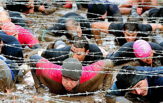 硬漢大賽:一年一度的英國硬漢挑戰(zhàn)大賽在英格蘭中部的伍爾弗漢普頓市舉行,共有接近3000名選手參加這項被譽為叢林戰(zhàn)士的賽事。參賽者需要在火焰中奔跑,穿越齊腰深的沼澤地,在帶刀片的鐵絲網下爬行,躍入冰冷的湖中……