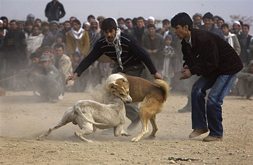 斗狗大賽:阿富汗舉行的斗狗大賽,數(shù)千名當(dāng)?shù)厝司奂诳Σ紶柦纪庥^看該項(xiàng)比賽。
