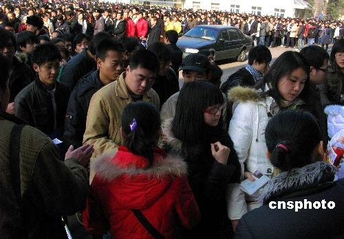 2月5日,“第三十四屆京城(北京)職場(chǎng)--2009年首場(chǎng)人才招聘會(huì)”,在全國(guó)農(nóng)業(yè)展覽館新館開(kāi)幕。 招聘會(huì)設(shè)立了約400個(gè)展位,應(yīng)聘的北京高校學(xué)生多達(dá)約幾萬(wàn)人次,場(chǎng)面異常火爆。