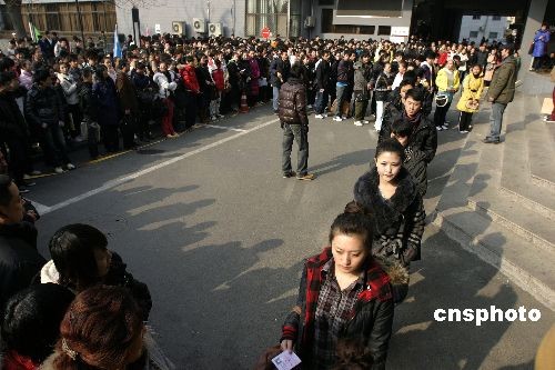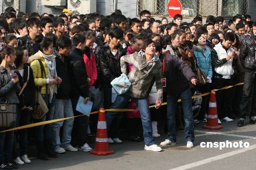 2月6日,最受社會關注、也是北京電影學院競爭最激烈的表演專業(yè)本科招生進入初試的第二天。由于2009年北影首次要求考生“素顏”應考,因此相比往年,現(xiàn)場濃妝艷抹、染著黃頭發(fā)、奇裝異服的考生并不多,個別化了淡妝的男女考生被要求先到衛(wèi)生間洗臉后才能進考場。據(jù)悉,雖然2009年的招生人數(shù)由往年的30人增加到75人,但面對4234名報考者,淘汰率仍高達98.2%。表演專業(yè)初試將持續(xù)4天,2月11日上午公布參加復試人員的名單。