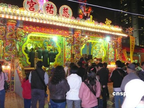 臺北元宵燈會開場,松山慈佑宮設(shè)立的燈區(qū)吸引了大量民眾前來上香,為新年祈禱。中新社發(fā) 路梅 攝