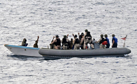 中新網(wǎng)2月12日電 美國(guó)海軍在亞丁灣抓獲7名海盜,當(dāng)時(shí)一艘商船發(fā)出求救信號(hào),海盜乘一艘小船正試圖阻截他們的商船。之后美國(guó)維拉灣巡洋艦迅速行動(dòng),截獲海盜船,抓獲了7名海盜。據(jù)稱,這些海盜配有AK-47突擊步槍和RPG火箭彈,他們將被移交給肯尼亞!